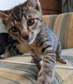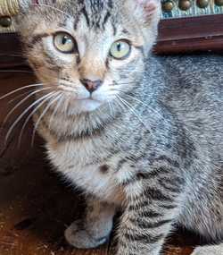 Background. This kitten is one of a litter of four that we rescued from a central city location. We had been contacted at short notice to do an emergency spay of the mother cat, who was believed to be pregnant. In fact, she had already had the kittens. We rushed her back to the site as soon as we could - but the kittens were alone for 40 hours. Miraculously, they survived. Two weeks later she appeared with them in tow. The crows started to take an interest and there were lots of cars, so we decided to rescue the litter.